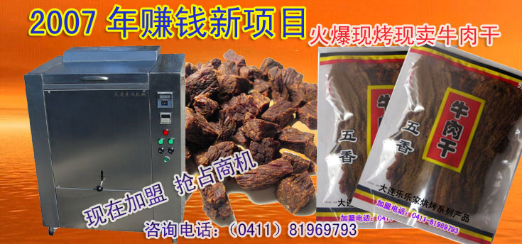 | 出商场烤牛肉干赚钱新项目。小投资大回报。我们负责为用户提供优质的烤牛肉干原料,选用草原优质牛肉,在 |
